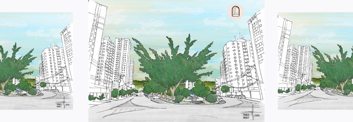 Em parceria com a Acaju Arquitetura, tivemos o prazer de prestar uma homenagem ao bairro com este encantador croqui, elaborado pelo talentoso arquiteto Marcos Prado. Quer ter um postal com este croqui? Entre em contato.